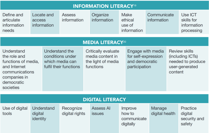 In ihrem Medien- und Informationskompetenzansatz hat die UNESCO die hier angesprochene Kompetenz duetlich als Informationskompetenz verortet. Gleichzeitig sind auch Aspekte wichtig, die der Medienkompetenz (z. B. kritisch zu prüfen, oder zu verstehen, wozu wir in einer Demokratie Daten benötigen) oder Digitalkompetenz (z. B. digitale Tools nutzen) zugeordnet werden.