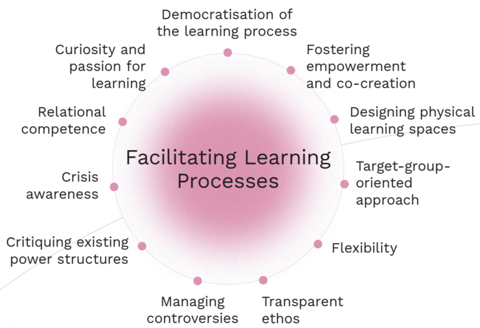 The competence profile offers opportunities for dialogue ad intersections between different action fields and pedagogies. However, it is strongly influenced by the perspective of intentional non-formal (extracurricular) citizenship and democracy-related youth education, which often takes place at third spaces in non-formal educational centres and youth centres. Of course, we have tried to include many perspectives, but whether we have succeeded in doing so is for others to judge – for example, those who offer more open-ended programmes, who work in non-location-specific settings, or who draw learning about democracy and sociopolitical issues from the situation at hand – for example, in international youth exchanges, experiential education, open social work, cultural practice, etc. The same applies to freelance educators or those whose job profile is more akin to that of a conference chair.
